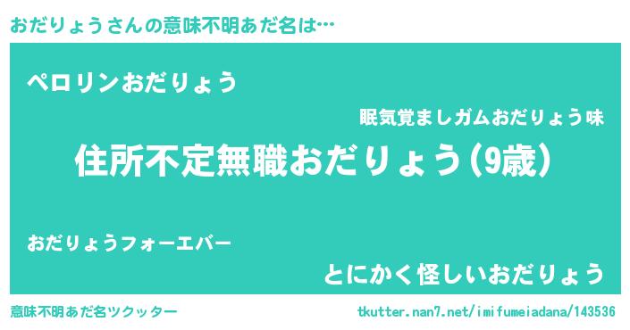 | 男性向けラノベタイトル風あだ名 | 『この素晴らしい世界におだりょうを!』 |