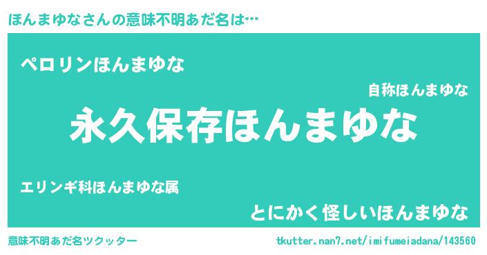 | 女子向けラノベタイトル風あだ名 | 『ほんまゆなの契約王妃』 |
