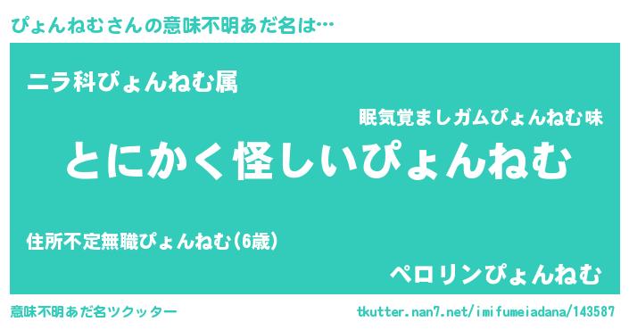 | 女子向けラノベタイトル風あだ名 | 『ぴょんねむの卵を拾いまして』 |