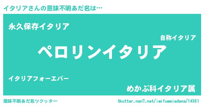 | 男性向けラノベタイトル風あだ名 | 『イタリアの憂鬱』『イタリアスレイヤー』 |