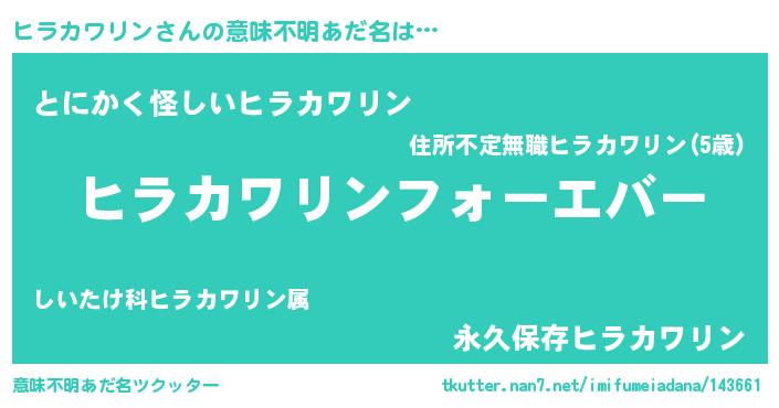 | ヒーロー風カッコイイあだ名 | 『ウルトラヒラカワリンマン』 |