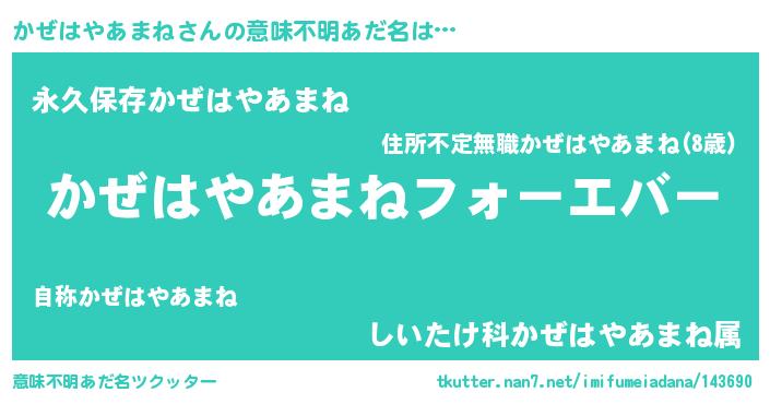 | 胡散臭い通販商品みたいなあだ名 | 『幸せが訪れる高級そうな絵画…その名も「かぜはやあまね」』 |