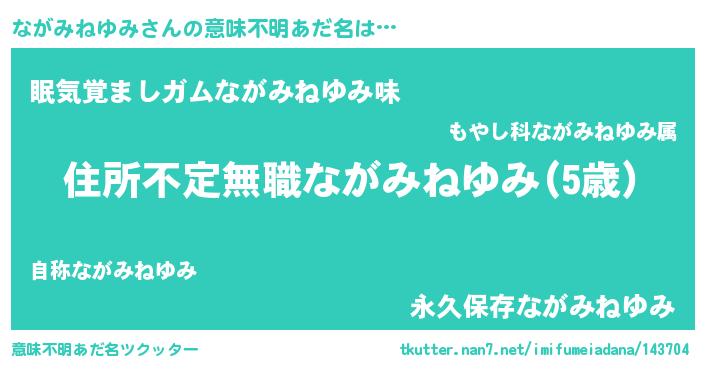 | 男性向けラノベタイトル風あだ名 | 『この素晴らしい世界にながみねゆみを!』 |