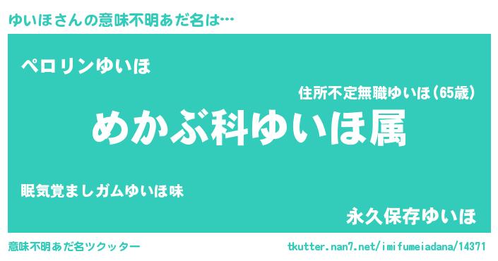 | 胡散臭い通販商品みたいなあだ名 | 『必ず成功するブレスレット…その名も「ゆいほ」』 |