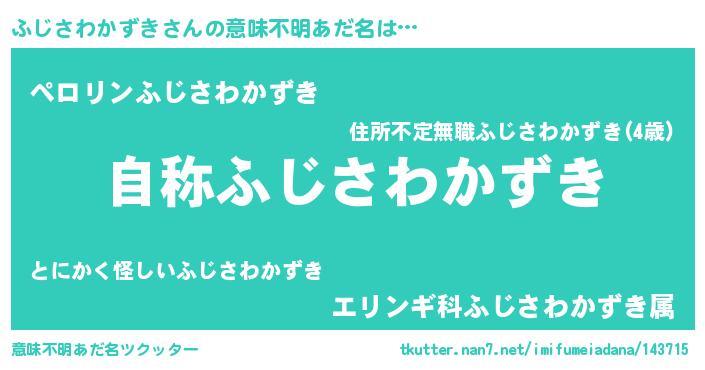 | 男性向けラノベタイトル風あだ名 | 『Re:ふじさわかずきから始める異世界生活』 |