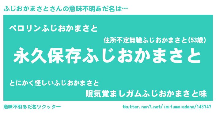 | 男性向けラノベタイトル風あだ名 | 『ふじおかまさとという概念が存在しない退屈な世界 』 |