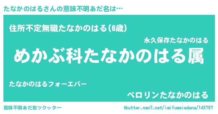 | 料理風あだ名 | 『たなかのはるごはん』 |