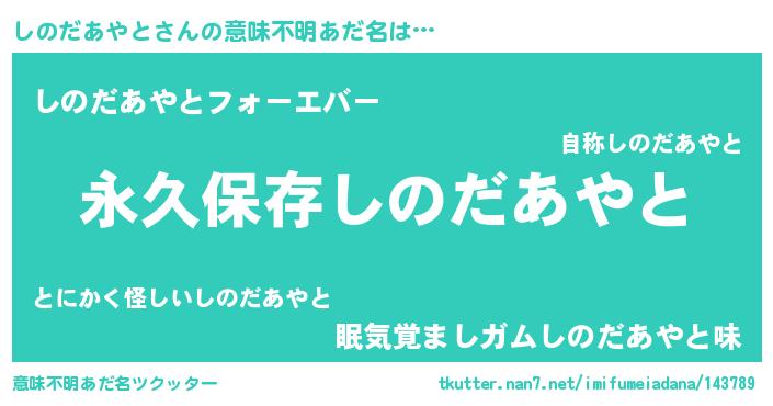 | 男性向けラノベタイトル風あだ名 | 『しのだあやとという概念が存在しない退屈な世界 』 |