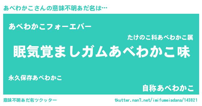 | 欧米人風あだ名 | 『アンジェラ・あべわかこ』 |