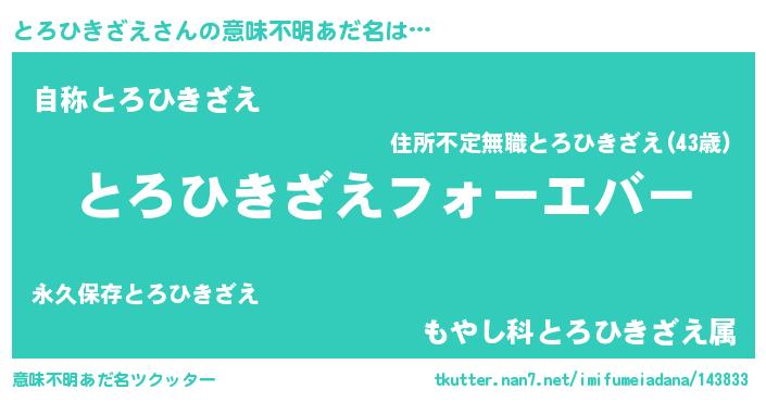 | ファンタジー風あだ名 | 『エターナルトロヒキザエー』 |