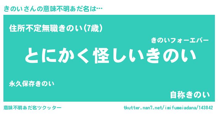 | 女子向けラノベタイトル風あだ名 | 『きのいは平凡を望む』『闇のきのい』 |