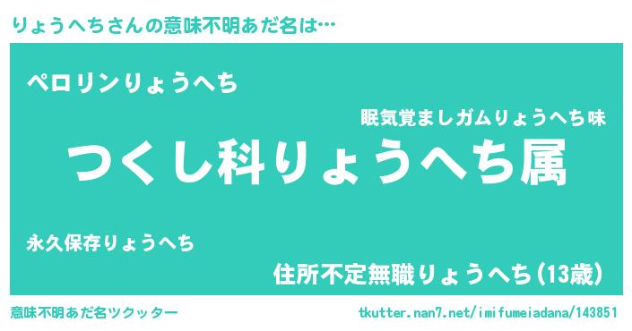 | 男性向けラノベタイトル風あだ名 | 『りょうへち~年齢イコール彼女いない歴の魔法使い~』 |