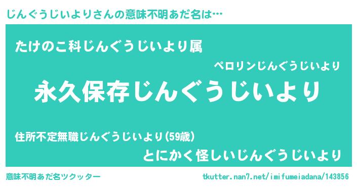 | 胡散臭い通販商品みたいなあだ名 | 『絶対に幸福をもたらす健康食品…その名も「じんぐうじいより」』 |