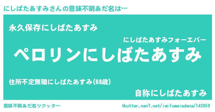 | 欧米人風あだ名 | 『にしばたあすみ・ステッグマイヤー』 |