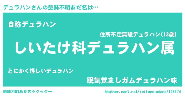 | 恥ずかしいあだ名 | 『デュラハンデラックス』『デュリンリン』 |