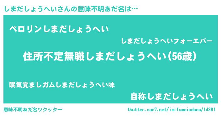 | 男性向けラノベタイトル風あだ名 | 『この素晴らしい世界にしまだしょうへいを!』 |
