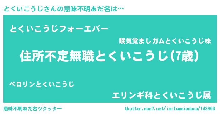 | 料理風あだ名 | 『とくいこうじのカルパッチョ風』 |