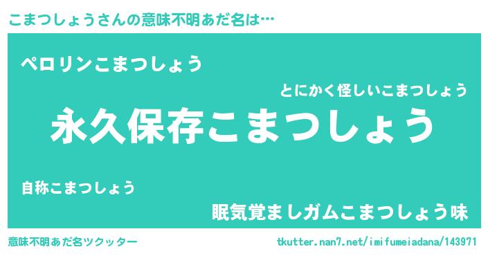 | 胡散臭い通販商品みたいなあだ名 | 『絶対に幸福をもたらす健康食品…その名も「こまつしょう」』 |
