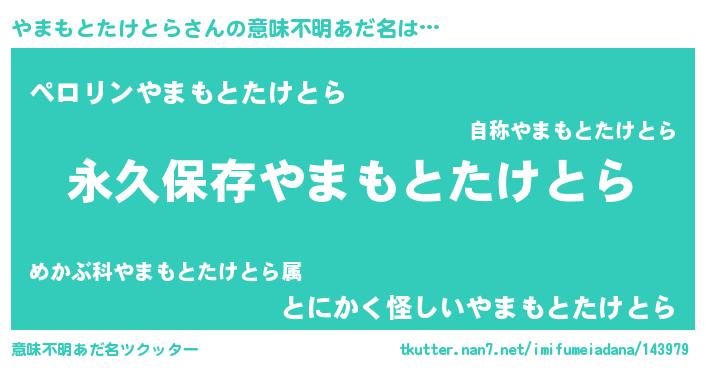| 伝説のあだ名 | 『古より伝わる吟遊詩人やまもとたけとら』 |