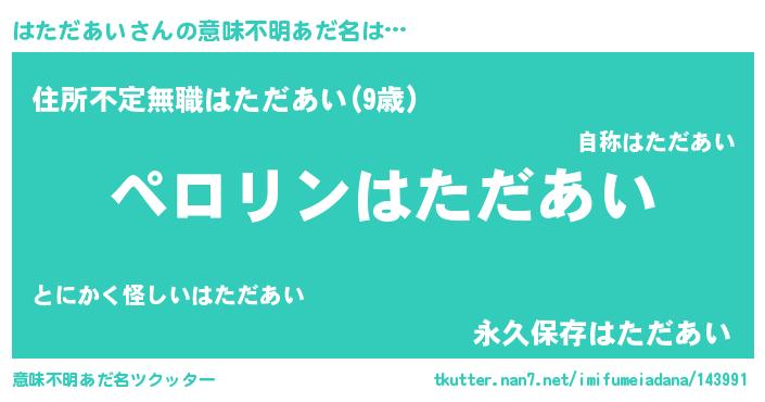 | 欧米人風あだ名 | 『アンジェラ・はただあい』 |