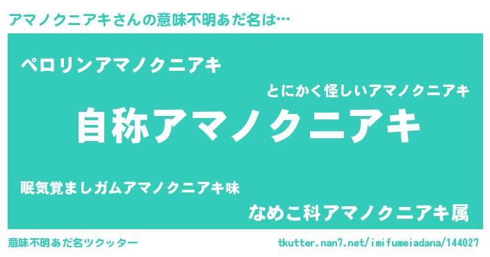| 女子向けラノベタイトル風あだ名 | 『アマノクニアキアンティーク』 |