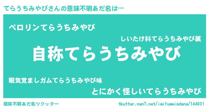 | 肩書あだ名 | 『てらうちみやび閣下』 |