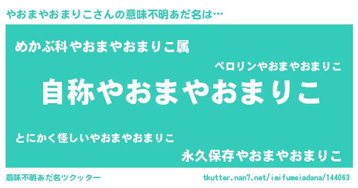 | 欧米人風あだ名 | 『ケンブリッジやおまやおまりこ』 |