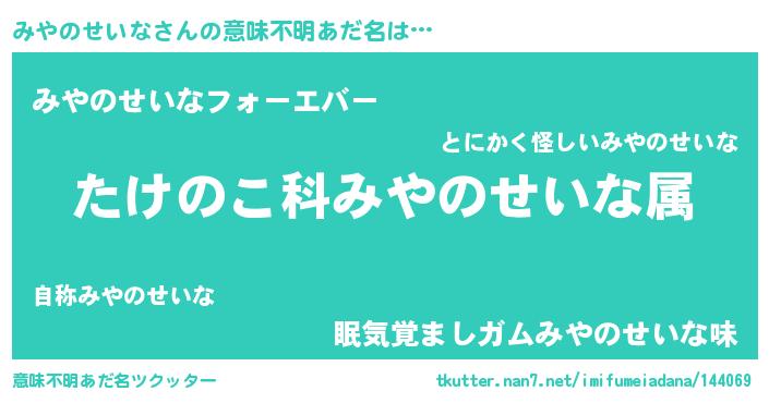 | 男性向けラノベタイトル風あだ名 | 『転生したらみやのせいなだった件』 |