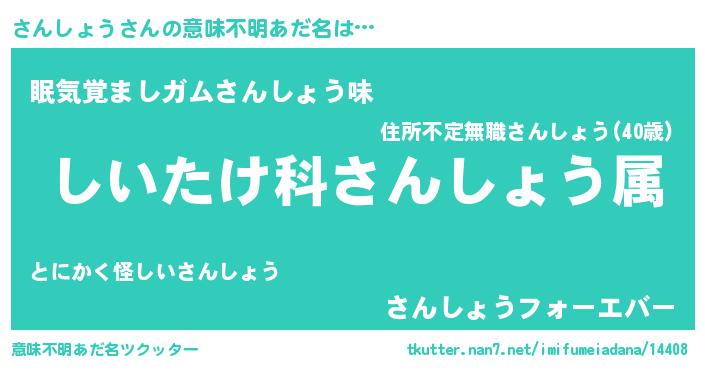 | 男性向けラノベタイトル風あだ名 | 『サンショウスレイヤー』 |
