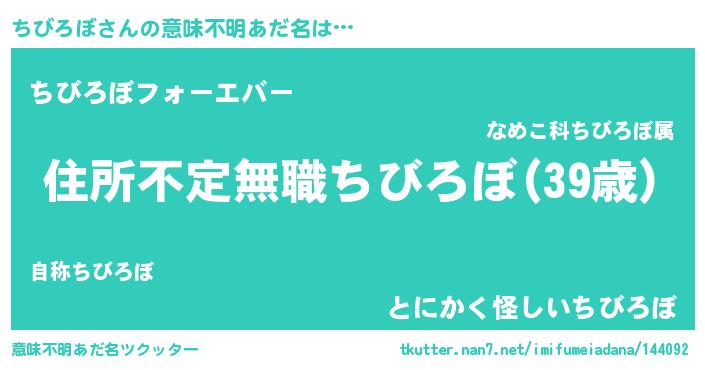 | 欧米人風あだ名 | 『アンジェラ・ちびろぼ』 |