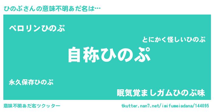 | 男性向けラノベタイトル風あだ名 | 『Re:ひのぷから始める異世界生活』 |