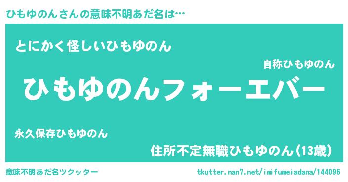 | ファンタジー風あだ名 | 『エターナルヒモユノンー』『ゼヒモトゥ』 |
