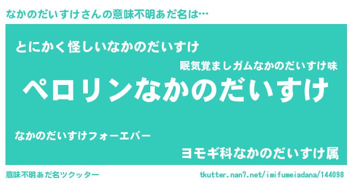 | 男性向けラノベタイトル風あだ名 | 『なかのだいすけの憂鬱』 |