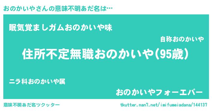 | 料理風あだ名 | 『おのかいやのカルパッチョ風』 |