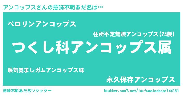 | 男性向けラノベタイトル風あだ名 | 『アンコップスに滅ぼされるだけの簡単なお仕事です』 |