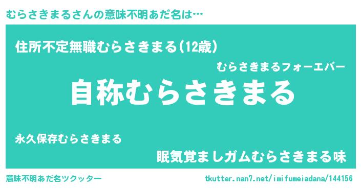 | 男性向けラノベタイトル風あだ名 | 『Re:むらさきまるから始める異世界生活』 |