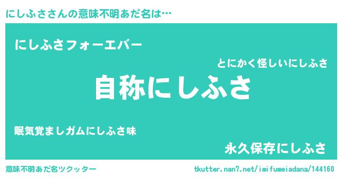 | 男性向けラノベタイトル風あだ名 | 『Re:にしふさから始める異世界生活』 |