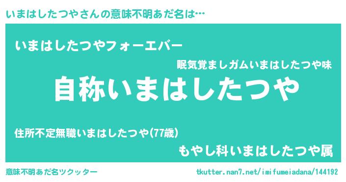 | 男性向けラノベタイトル風あだ名 | 『Re:いまはしたつやから始める異世界生活』 |