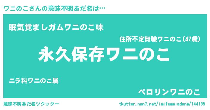 | 女子向けラノベタイトル風あだ名 | 『ワニのこの契約王妃』『ワニのこ恋絵巻』 |