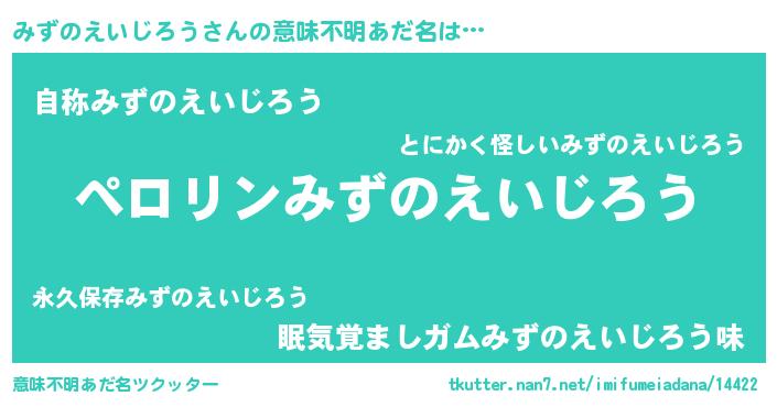 | 胡散臭い通販商品みたいなあだ名 | 『モテモテ間違いなし霊験あらたかなお札…その名も「みずのえいじろう」』 |