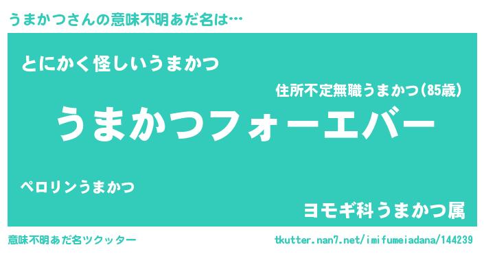 | 胡散臭い通販商品みたいなあだ名 | 『運命の人と巡り会える高級そうな壺…その名も「うまかつ」』 |