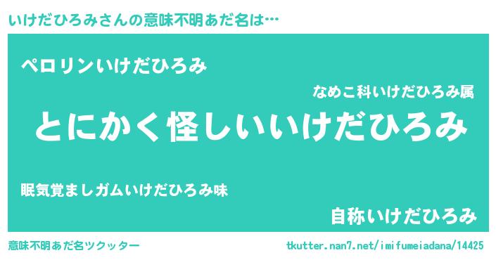 | 男性向けラノベタイトル風あだ名 | 『いけだひろみの嫁は女の子じゃないと思った?』 |