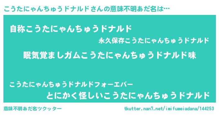 | 胡散臭い通販商品みたいなあだ名 | 『モンドセレクションを受賞したイリジウム磁石…その名も「こうたにゃんちゅうドナルド」』 |