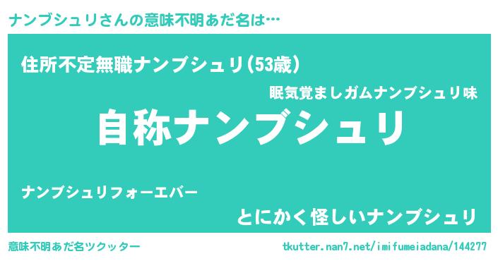 | 女子向けラノベタイトル風あだ名 | 『ナンブシュリアンティーク』 |