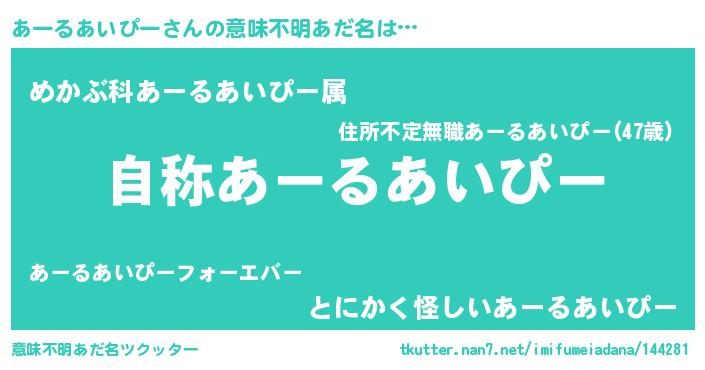 | 女子向けラノベタイトル風あだ名 | 『あーるあいぴーアンティーク』 |
