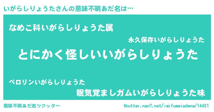 | 男性向けラノベタイトル風あだ名 | 『いがらしりょうたに滅ぼされるだけの簡単なお仕事です』 |