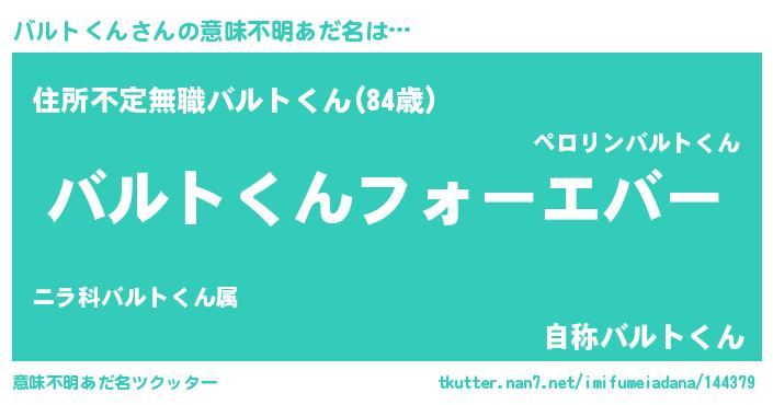 | ファンタジー風あだ名 | 『エターナルバルトクンー』『ゼバルトゥ』 |