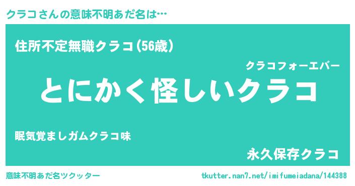 | ポケモン風あだ名 | 『ヒクラコ』『クーライ』『ゼニクラ』 |