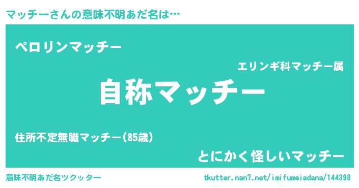 | 胡散臭い通販商品みたいなあだ名 | 『ガンによく効く冬虫夏草…その名も「マッチー」』 |