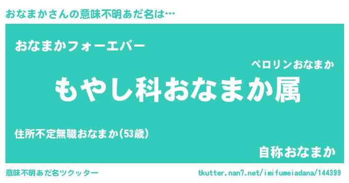 男性向けラノベタイトル風あだ名 | 『転生したらおなまかだった件』 |